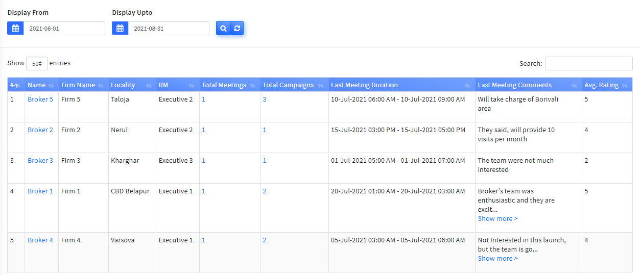 Bird’s eye view of broker meetings, sales statistics, broker performance, sourcing team performance, broker conducted campaigns, broker meet analysis and much more! all in a single dashboard.